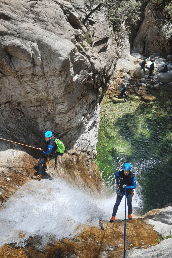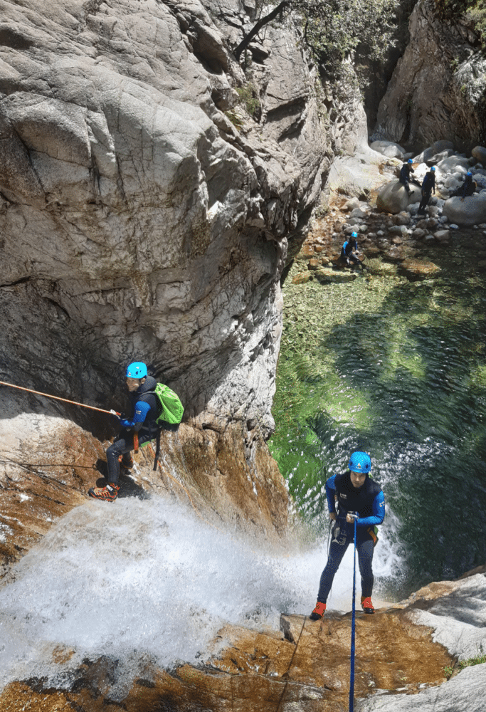 Un séjour canyoning en Corse, c’est une aventure complète où l’on alterne :