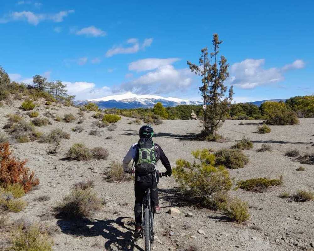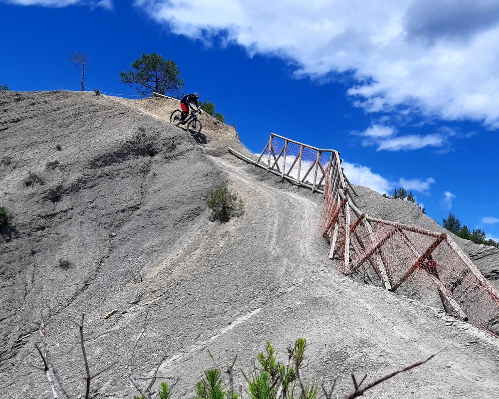 En fonction du niveau et de votre forme, le parcours peut s’allonger de quelques kilomètres avec l’ajout de sentiers ludiques, parfaits pour goûter aux joies de l’enduro. L’arrivée à Aínsa par les spectaculaires Badlands est alors un vrai feu d’artifice visuel : une crête de marnes sculptée par l’érosion, offrant un panorama à couper le souffle.